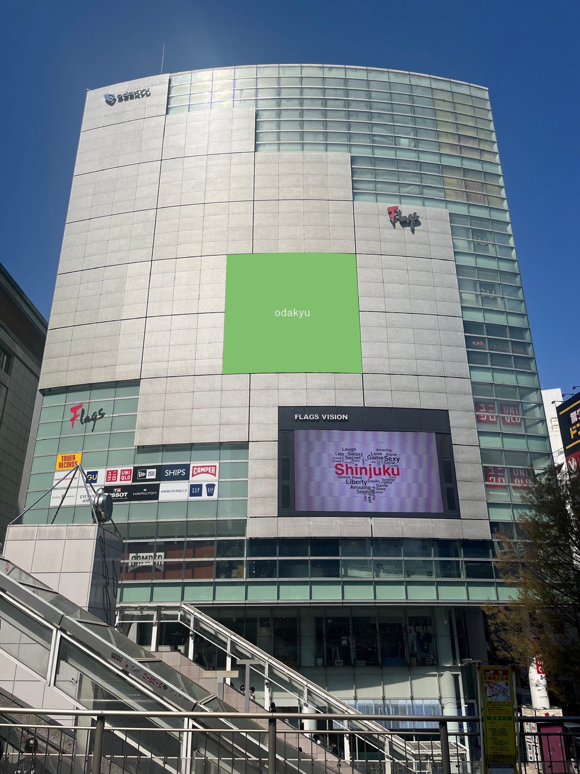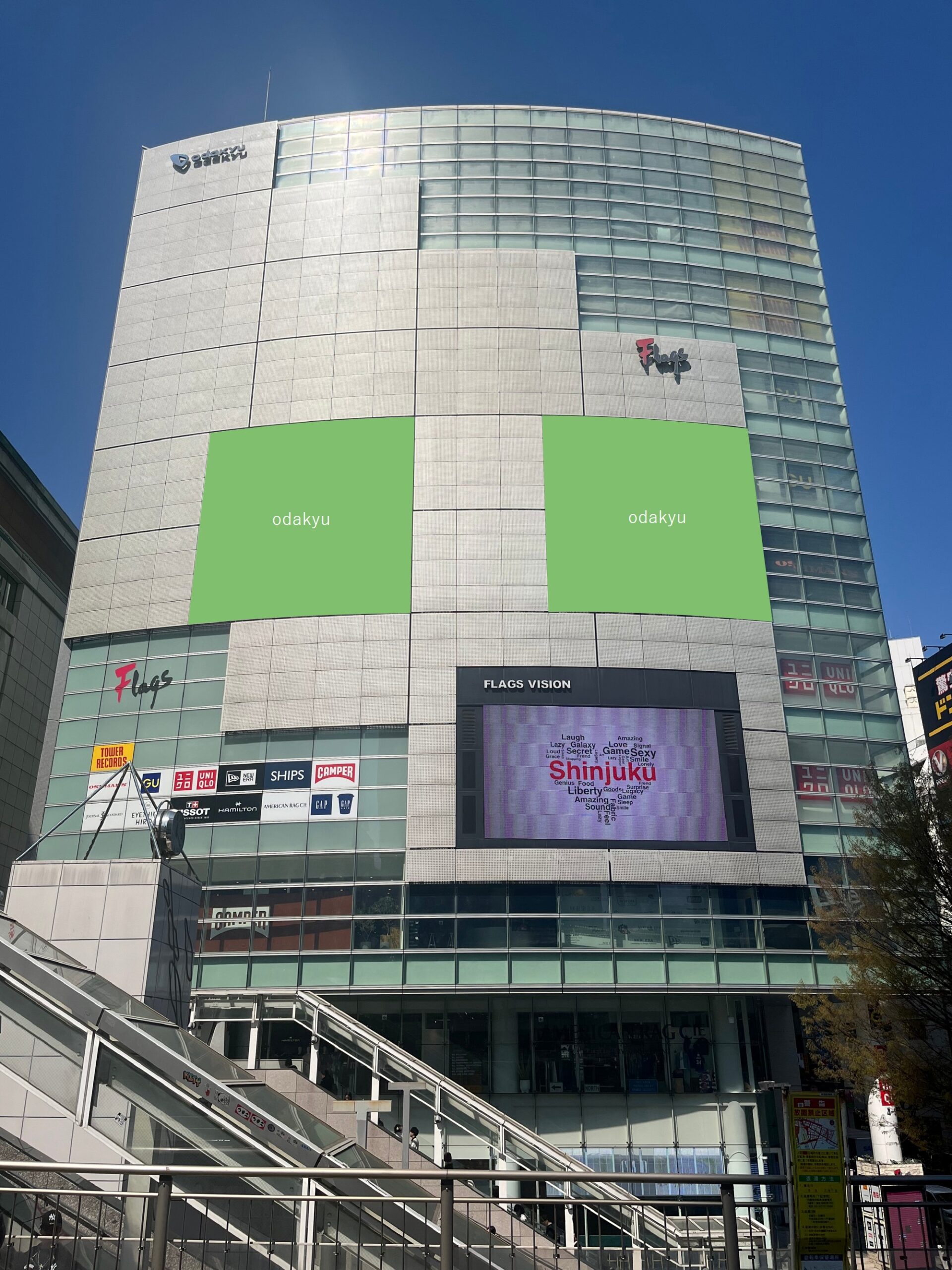 Flagsのフロント壁面を利用した大型メディア。